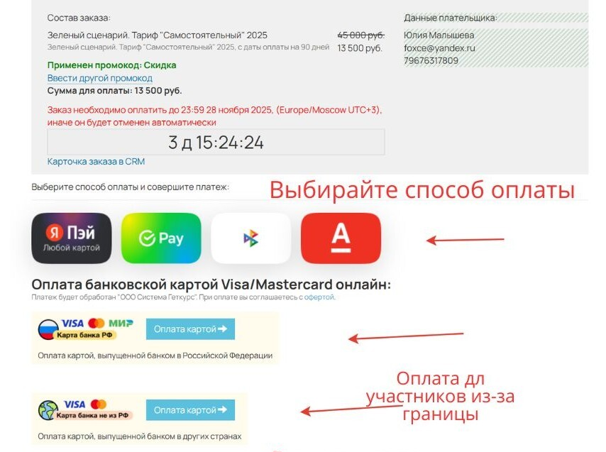 Нажмите на кнопку перейти к оплате, далее выбирайте способ оплаты.